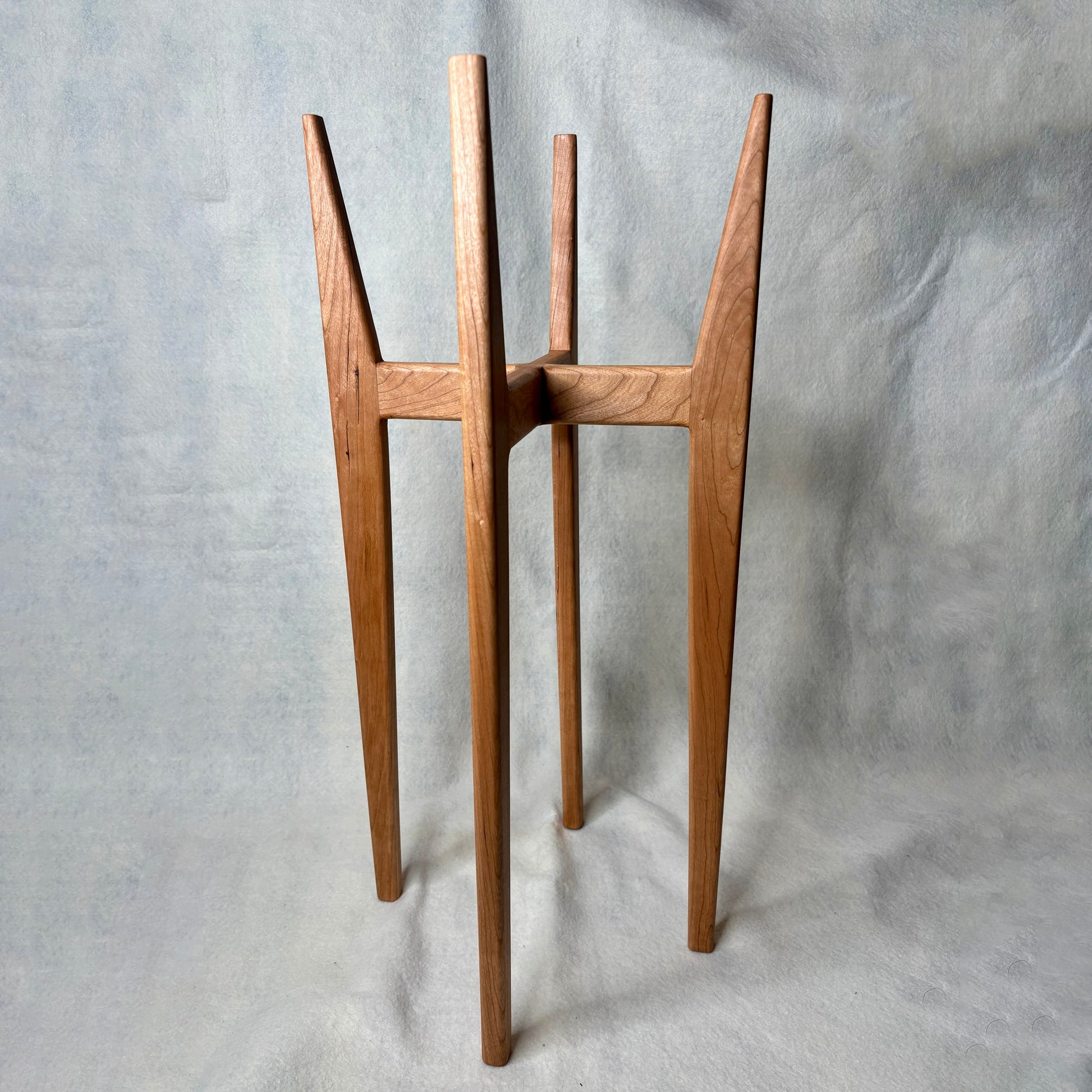 Solid Cherry Indoor Plant stand. A mix of traditional cross-lap joinery and modern loose tenon joinery for superb strength and clean lines. Finished with satin Osmo hard-wax oil and featuring recessed rubber levelling feet for near-invisible grip and stability. (8.5" pot base shown)